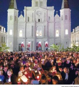 Patio Planters of the Vieux Carre is pleased to present the beloved Caroling in Jackson Square tradition to visitors and locals alike on Sunday, Dec. 21, from 7-8 p.m. The free community sing-along gathers thousands of people for a festive hour of holiday merriment, with carols led by local dignitaries and clergy. Gates open at 6:30 p.m. with Patio Planters volunteers stationed there to distribute complimentary song books and candles to participants in the non-denominational community celebration